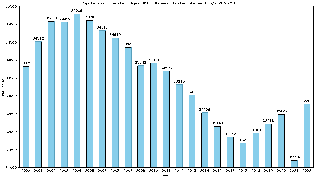 Population – Female – Aged 80+ – [2000-2022] | Kansas, United-states